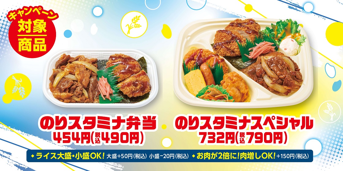 オリジナル商品がもらえるキャンペーン対象商品は、「のりスタミナ弁当」「のりスタミナスペシャル」の2種類。