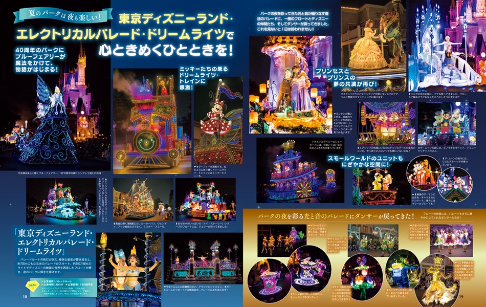 ダンサーが登場し、さらに出演キャラクターやコスチューム、フロートも変更されてパワーアップした「東京ディズニーランド・エレクトリカルパレード・ドリームライツ」が撮り下ろし写真で届けられます。