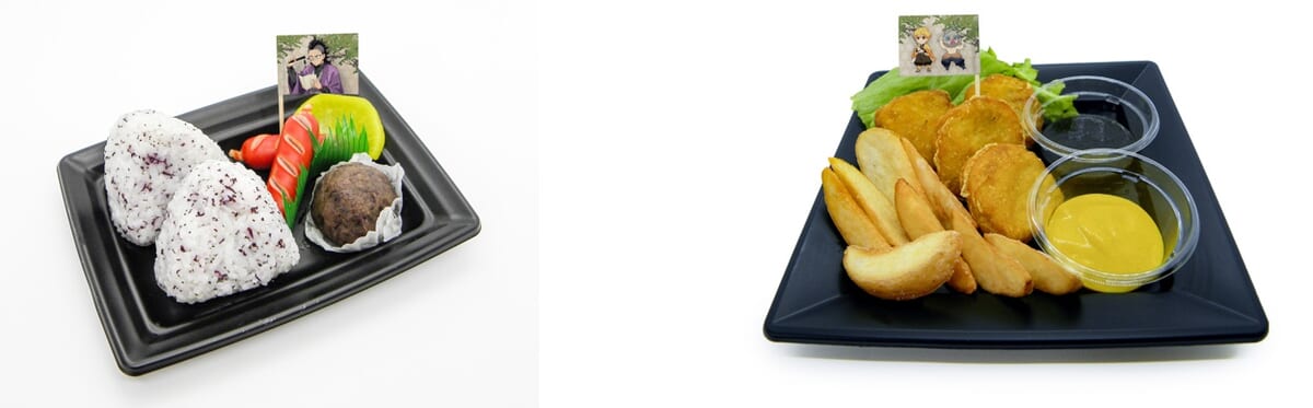 不死川玄弥のおにぎりセット(左)/善逸と伊之助のポテナゲプレート(右)