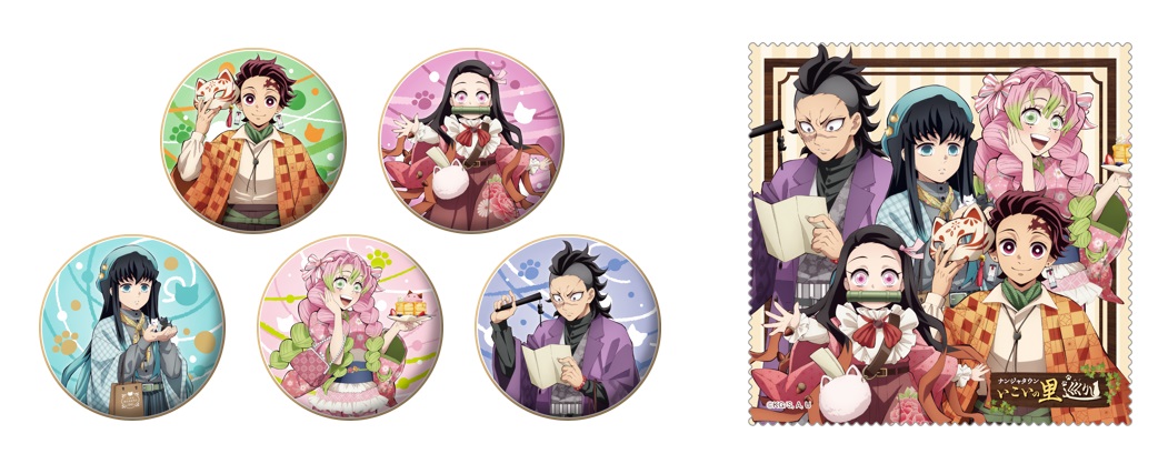 描き下ろしイラストが使われた丸型缶バッジと、ネコ型のお面風缶バッジが登場します!