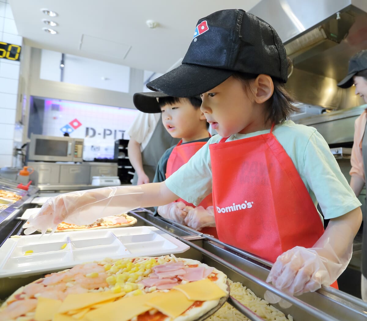 内容:ピザ作り体験、ピザお持ち帰り、認定証授与、ドミノ・ピザオリジナルのエプロンとキャップをプレゼント