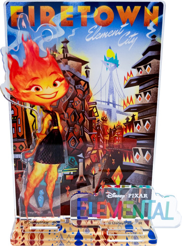 アクリルスタンドの背景は、「エンバー」の住む町「ファイアタウン」が描かれています。