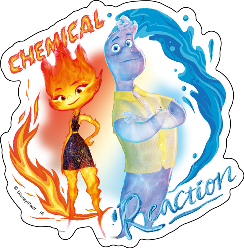ディズニー&ピクサー映画『マイ・エレメント』の主人公「ウェイド」と「エンバー」のダイカットステッカー。