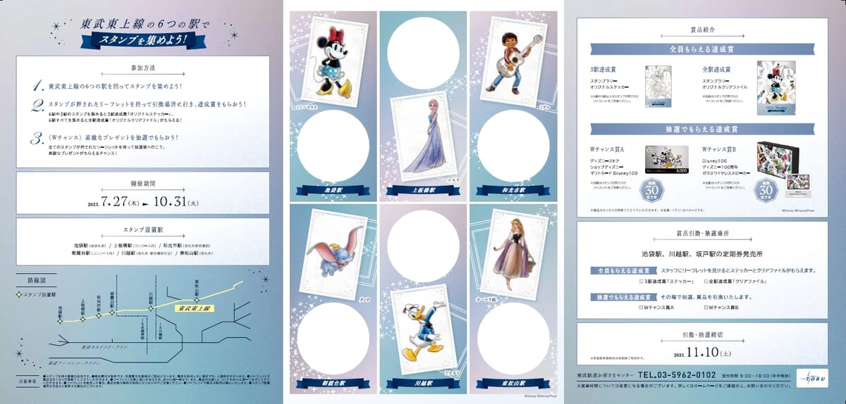 期間中、池袋駅や上板橋駅、和光市駅、朝霞台駅、川越駅の6駅にディズニー100を記念したスタンプが設置されます。