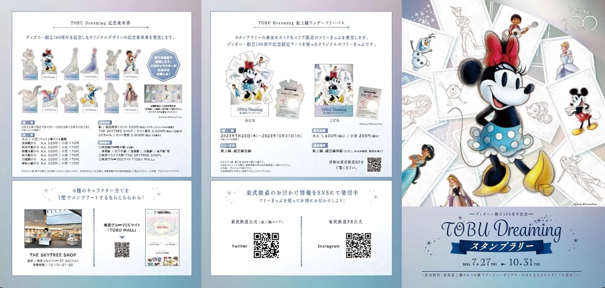 東武鉄道は、2023年7月27日(木)より東武東上線にて、ディズニー創立100周年を記念したイベントの第2弾「TOBU Dreamingスタンプラリー」を開催!
