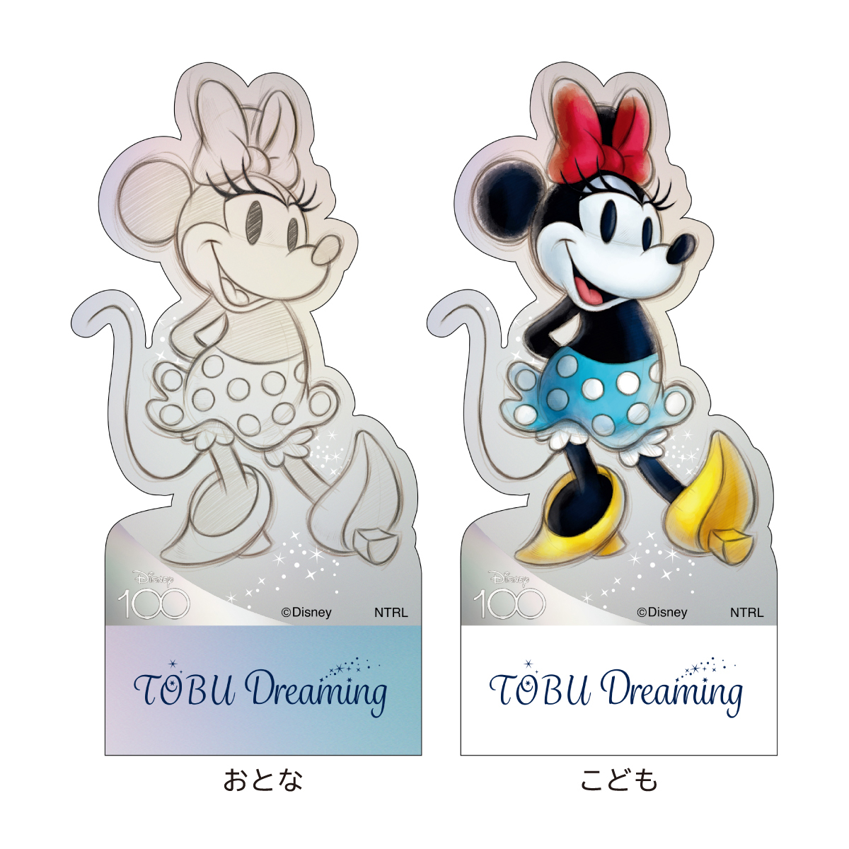 フルカラーと線画の2パターンがセットになった、ディズニー100デザインの限定乗車券です。