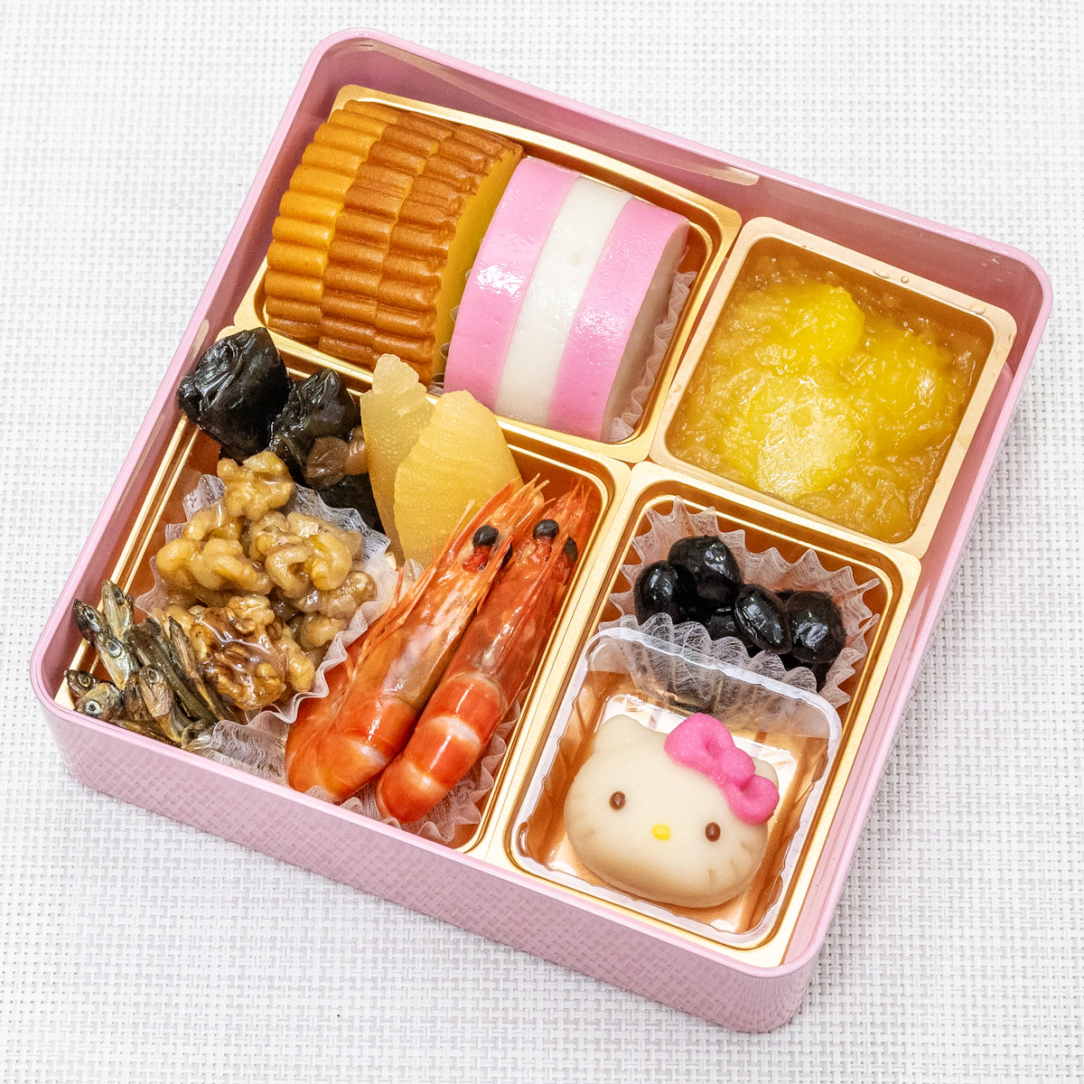 紀文 2024年「サンリオキャラクターズのおせち詰合せ」壱の重 ハローキティ練り切り