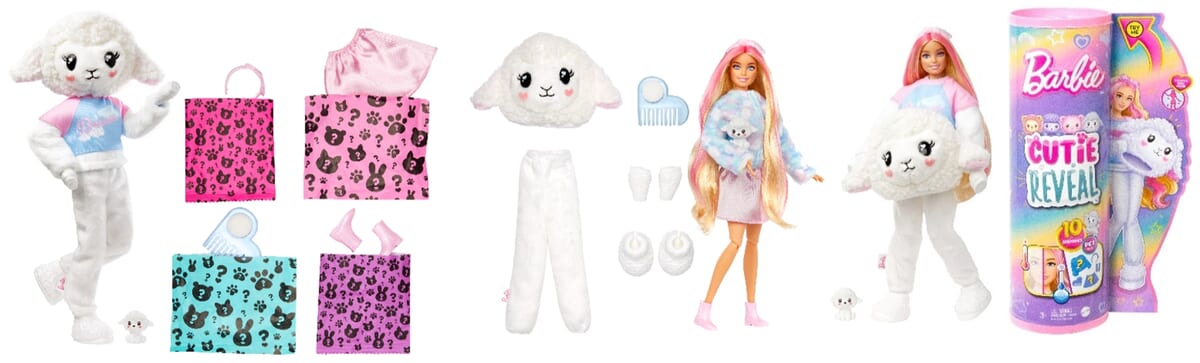 ホワイトを基調にしたヒツジのモチーフの「キュートアップ!きぐるみバービー ヒツジ」