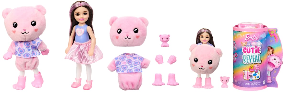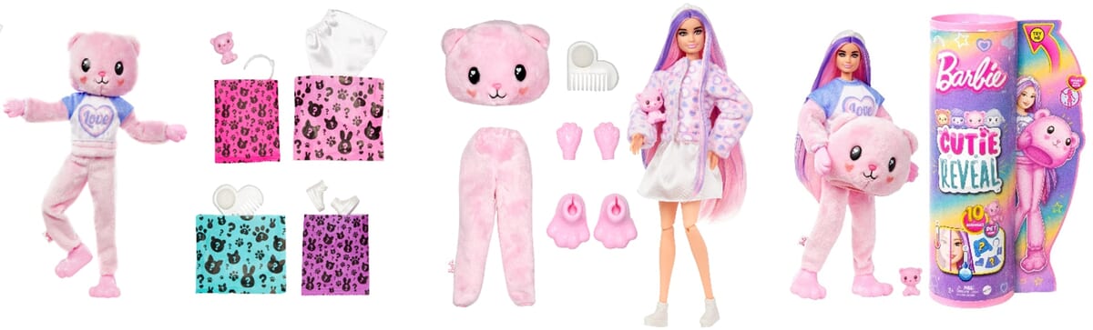 「バービー」がふわふわな動物のきぐるみを着ている「キュートアップ」シリーズ。