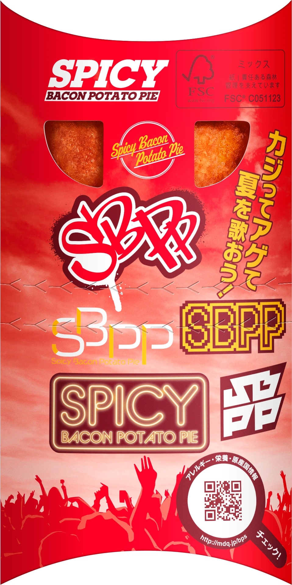 赤を基調としたカラーリングが、「スパイシーベーコンポテトパイ」のクセになる辛みを思わせるデザインです。