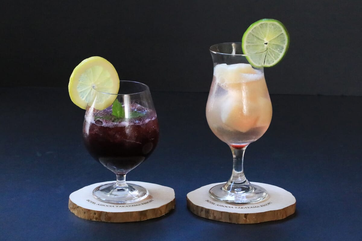 「アソシア畑のブルーベリー 大人のビターカクテル」と「飛騨桃のスイートサマーカクテル」が提供されます。