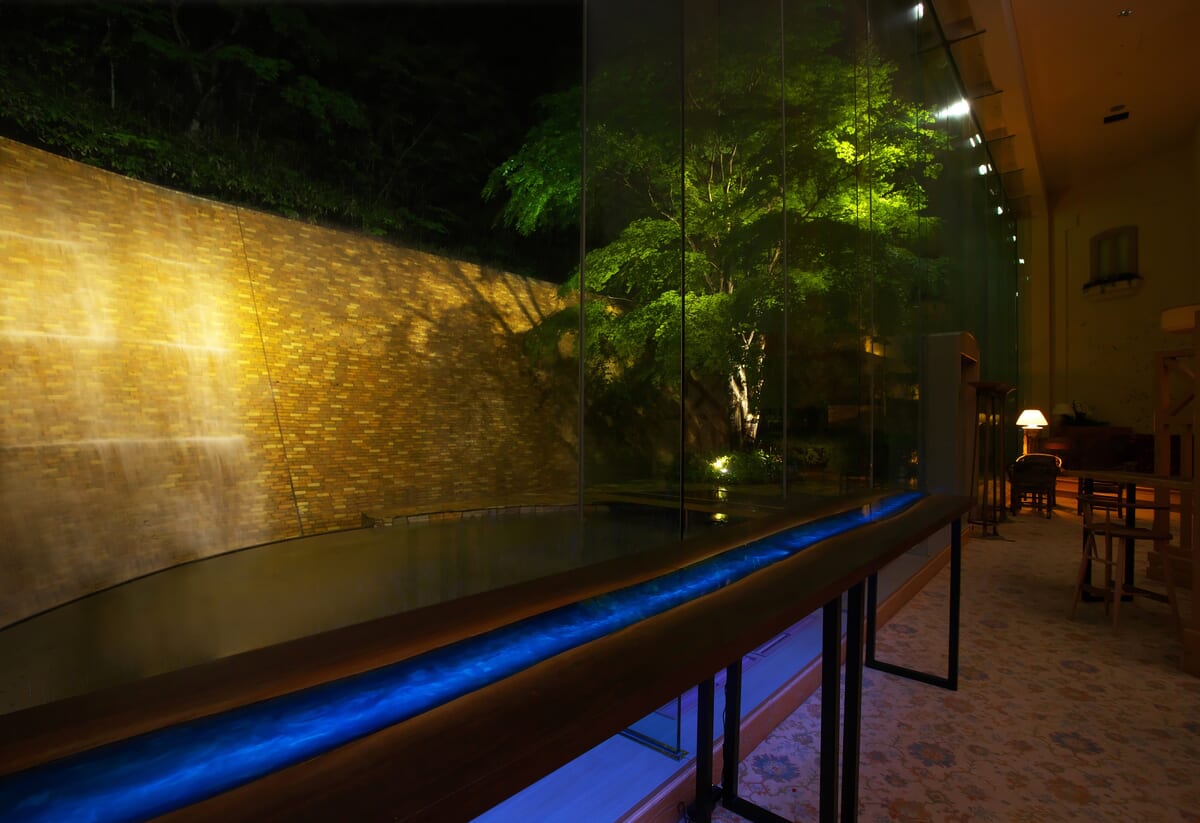 飛騨高山温泉1号泉の「天望の湯」には、北アルプスを一望できる10種の露天風呂と内湯、3種類の貸切露天風呂があり、大露天風呂は湯面と空が一体となる「インフィニティバス」として人気を集めています。
