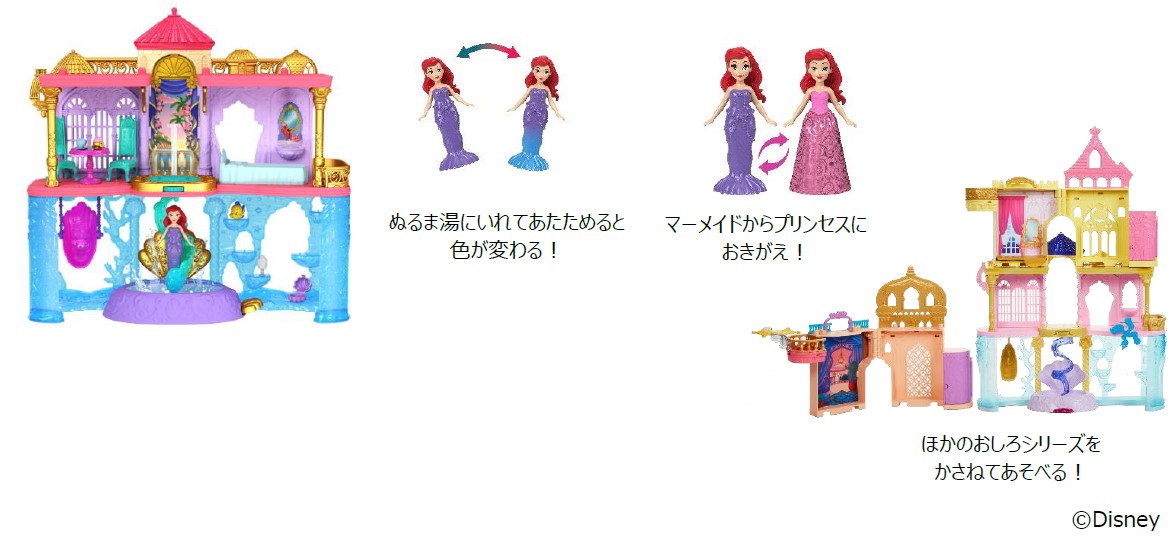 今回は、「かさねるおしろシリーズ!ミニドール」から発売される「ディズニープリンセス アリエルとデラックスおしろ」を紹介していきます☆