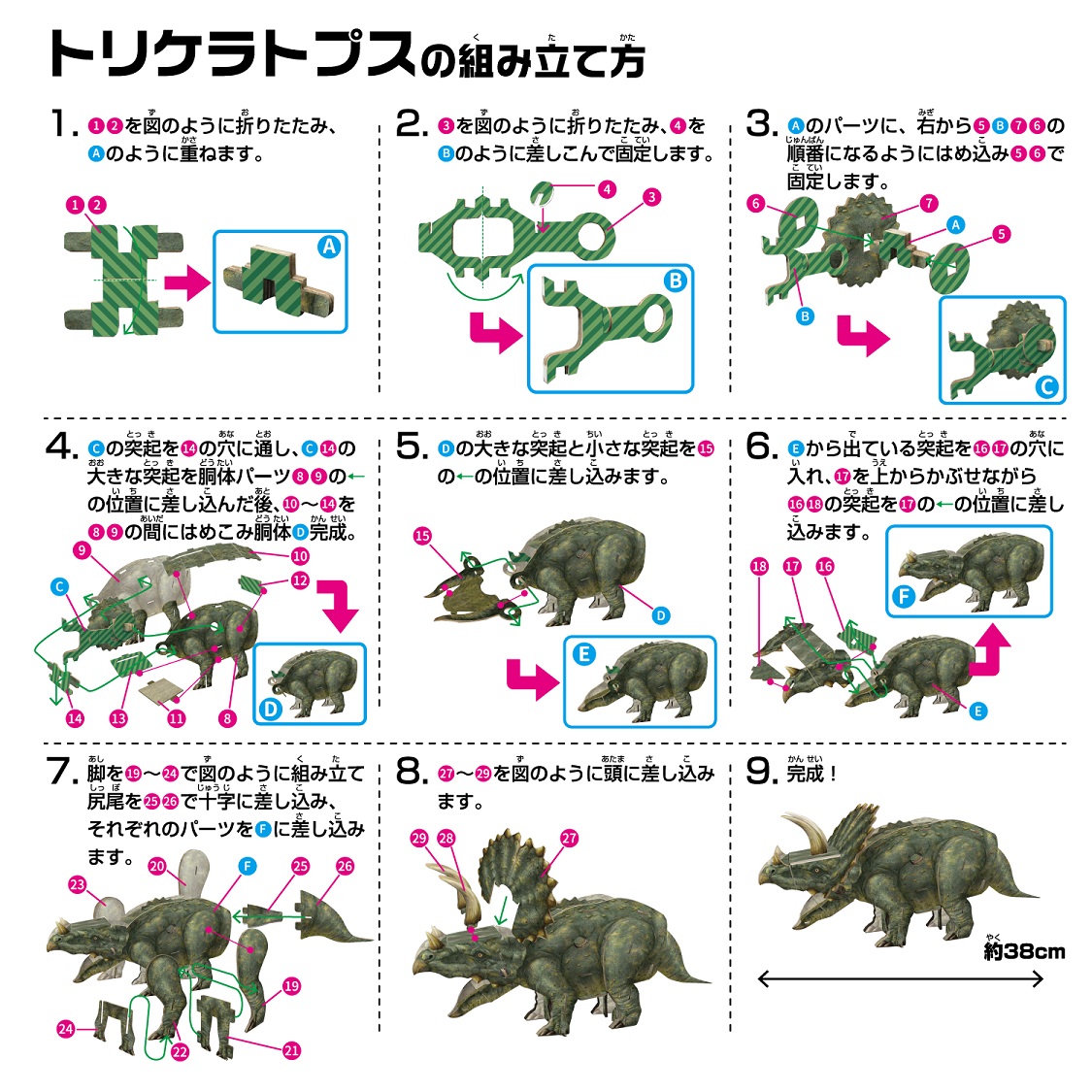 パーツには番号が振られていて、順番に組み立てれば簡単に楽しく完成します。