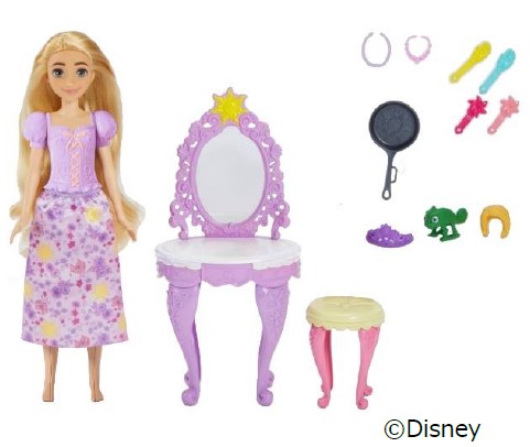 ディズニー映画『塔の上のラプンツェル』に登場する「ラプンツェル」と豪華なドレッサーのセット。
