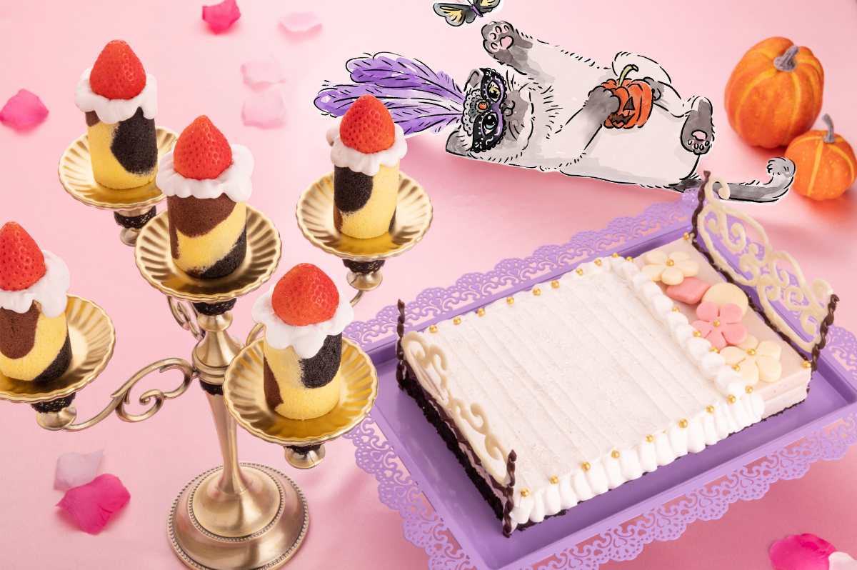 さらに、宮殿の中で猫たちがおやすみするイチジクのベッドムースケーキ、宮殿の外からパーティーの様子を覗いているおばけを表現したダークチェリーのタルトなど、ヒルトン東京ベイでしか味わうことができないストーリー性のあるデザートが提供されます。
