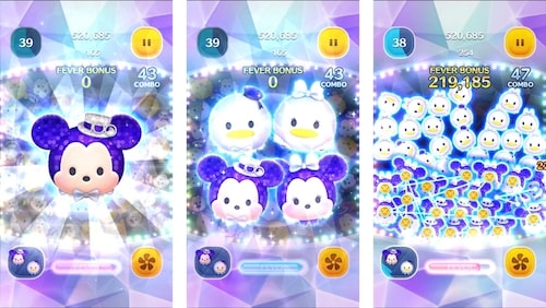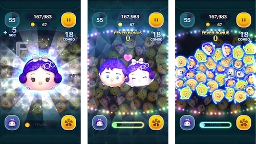 「Disney100 白雪姫」のスキルを使うとフィーバーがはじまり、横ライン状にツムを消します。