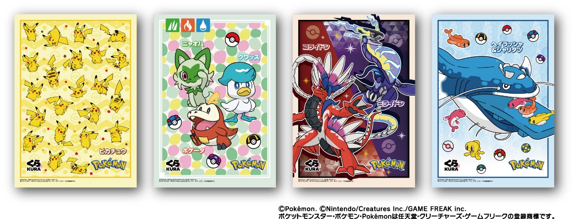 絵柄はピカチュウの総柄、ニャオハ・ホゲータ・クワッス、ミライドン・コライドン、ヘイラッシャ&シャリタツの4種類。