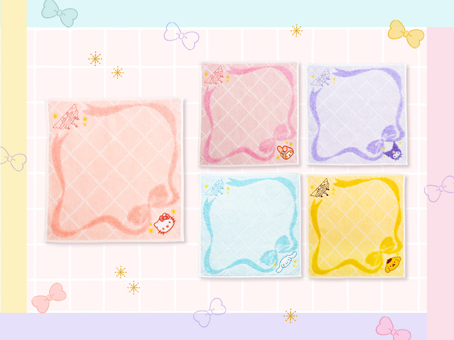 ワンポイントでキャラクターが入っている「リボンデザインミニタオル」