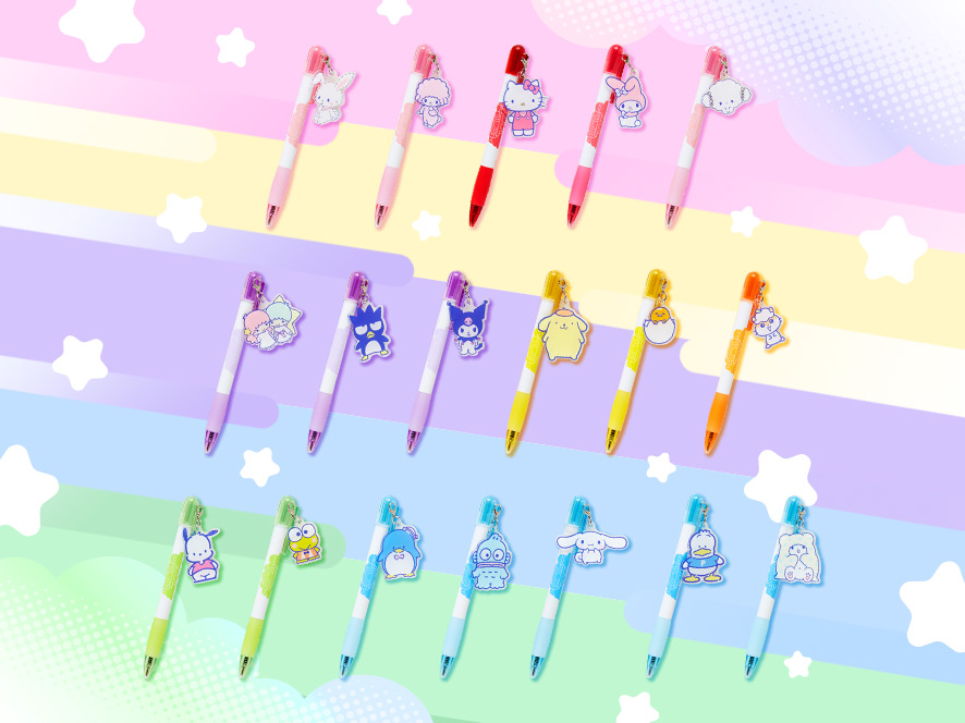 ペンの軸色は、それぞれのキャラクターをイメージした色合いになっています。