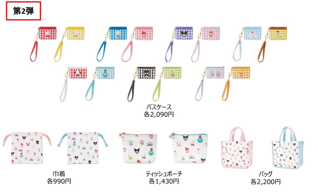 第2弾では「パスケース」「巾着」「ティッシュポーチ」「バッグ」を展開。