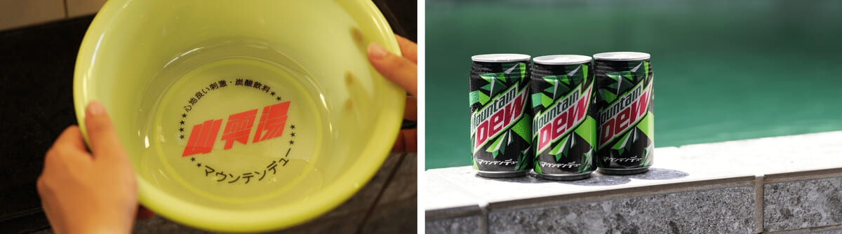番台も「マウンテンデュー」を象徴するグリーンに包まれ、ポップでありながらどこか秘境を感じさせる雰囲気に。
