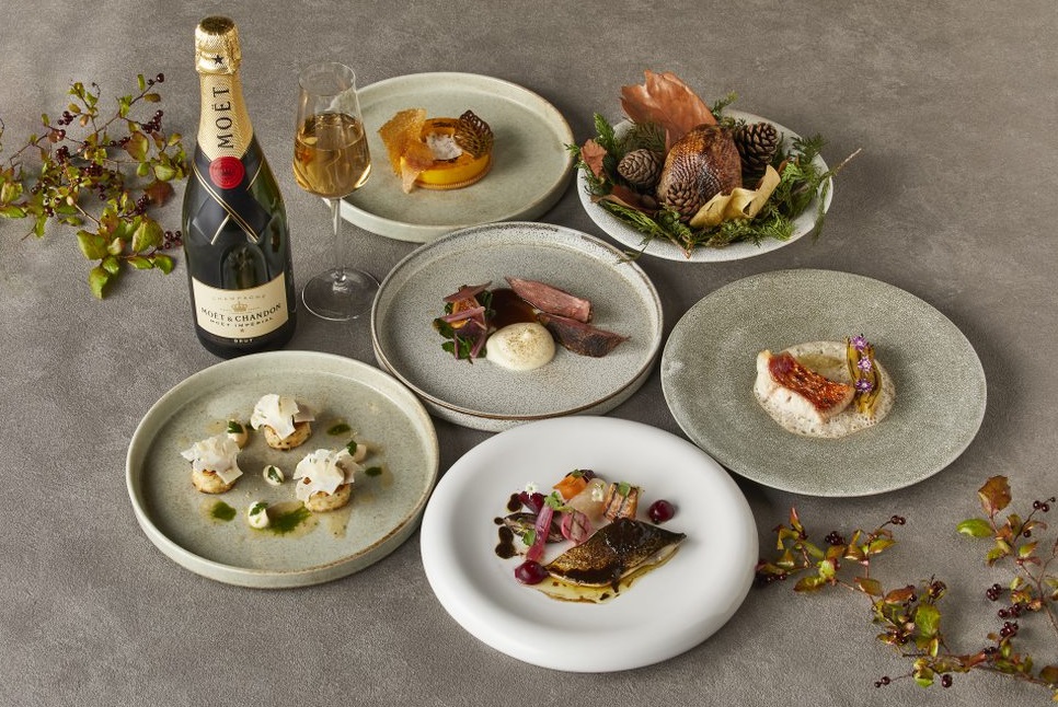 きのこや柿、かぼちゃを取り入れたコースメニューに、秋に旨味が増すといわれるイノシシや鹿のジビエなど秋の味覚を贅沢に楽しめるメニューが味わえます。