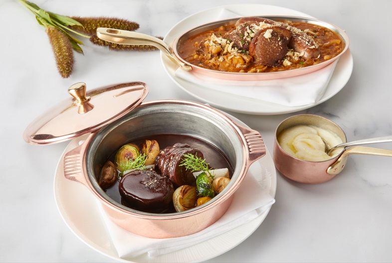 「煮込んだブルギニョン」は、国産鹿肉にマッシュルームと栗を加え、赤ワインをたっぷり使った煮込み料理。