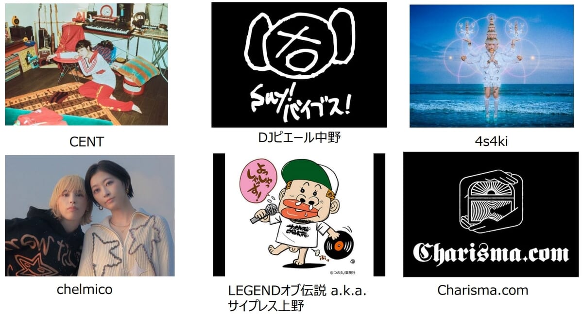 CENT、DJピエール中野、4s4ki、chelmico、LEGENDオブ伝説 a.k.a. サイプレス上野、Charisma.com、