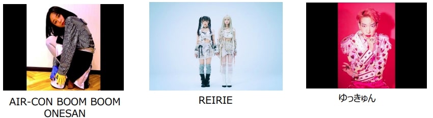 • FOOD COURT STAGE:AIR-CON BOOM BOOM ONESAN、ゆっきゅん、Yackle feat. Sora、徳利、valknee、西恵利香、相谷レイナ、plan i、bala、Hangovers、HiiT FACTORY、街裏ぴんく、釈迦東京、YourLimitCheers(ChibiChael&Nano Dia)