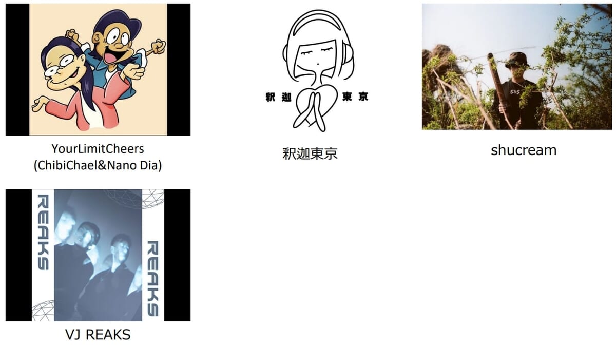 Your Limit Cheers( ChibiChael & Nano Dia )、釈迦東京、shucream、 VJ REAKSの計25組。