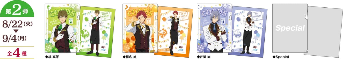 「ココス限定オリジナルアクリルコースター」と「ココス限定オリジナル描き下ろしカード」がラインナップされます。