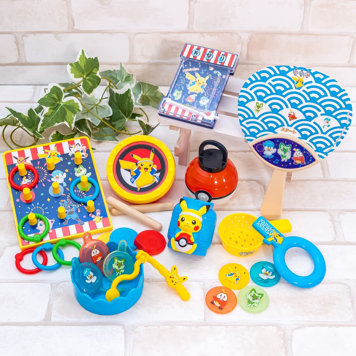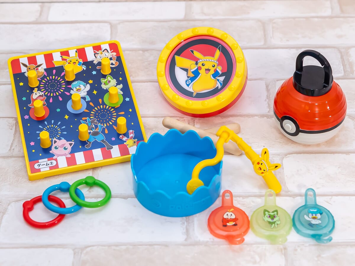 ポケモンすくいや、的当て、ピンボールなど、ピカチュウやニャオハ・ホゲータ・クワッスたちと夏祭りの雰囲気を楽しめるおもちゃです。