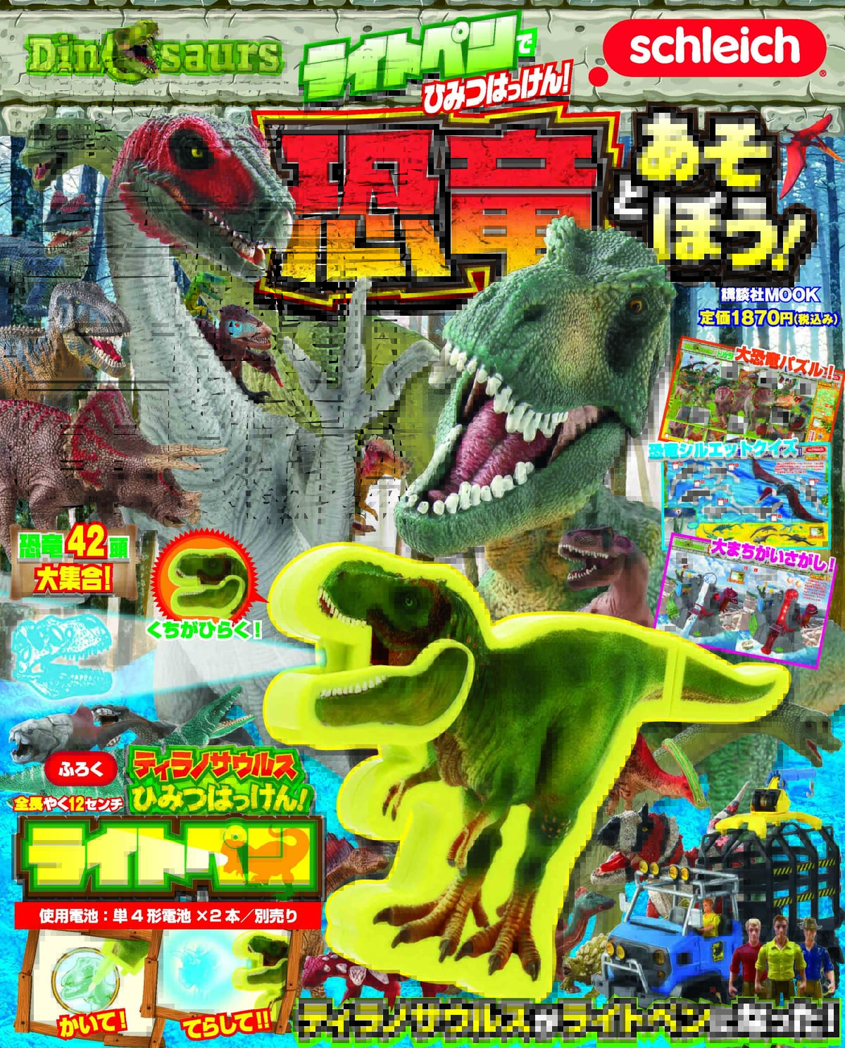 講談社から、「シュライヒ(Schleich)」の恐竜フィギュアが不思議なライトぺンになった『ライトペンでひみつはっけん! 恐竜とあそぼう!』が登場!