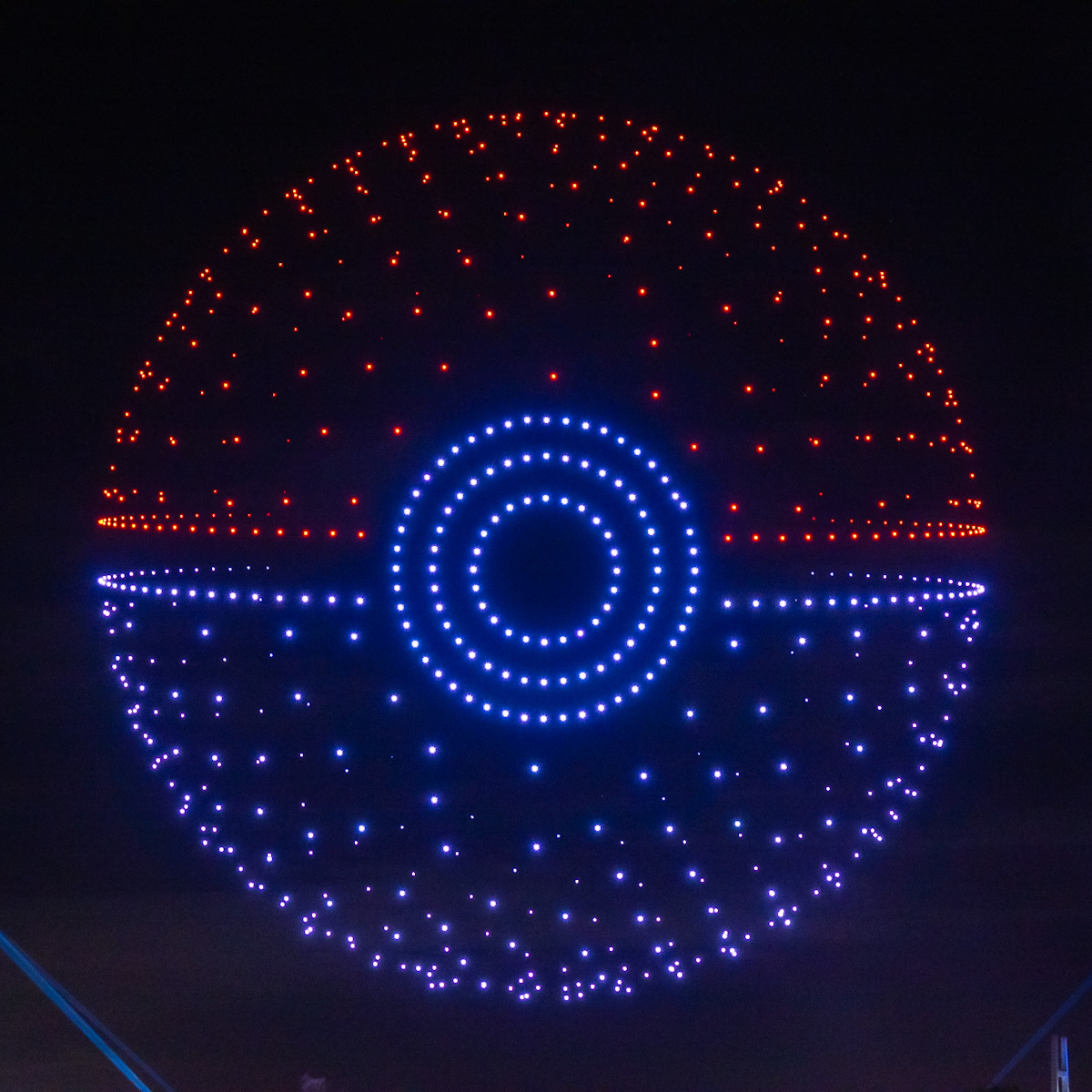 たくさんのドローンで夜空にポケモンたちを描いていきます。