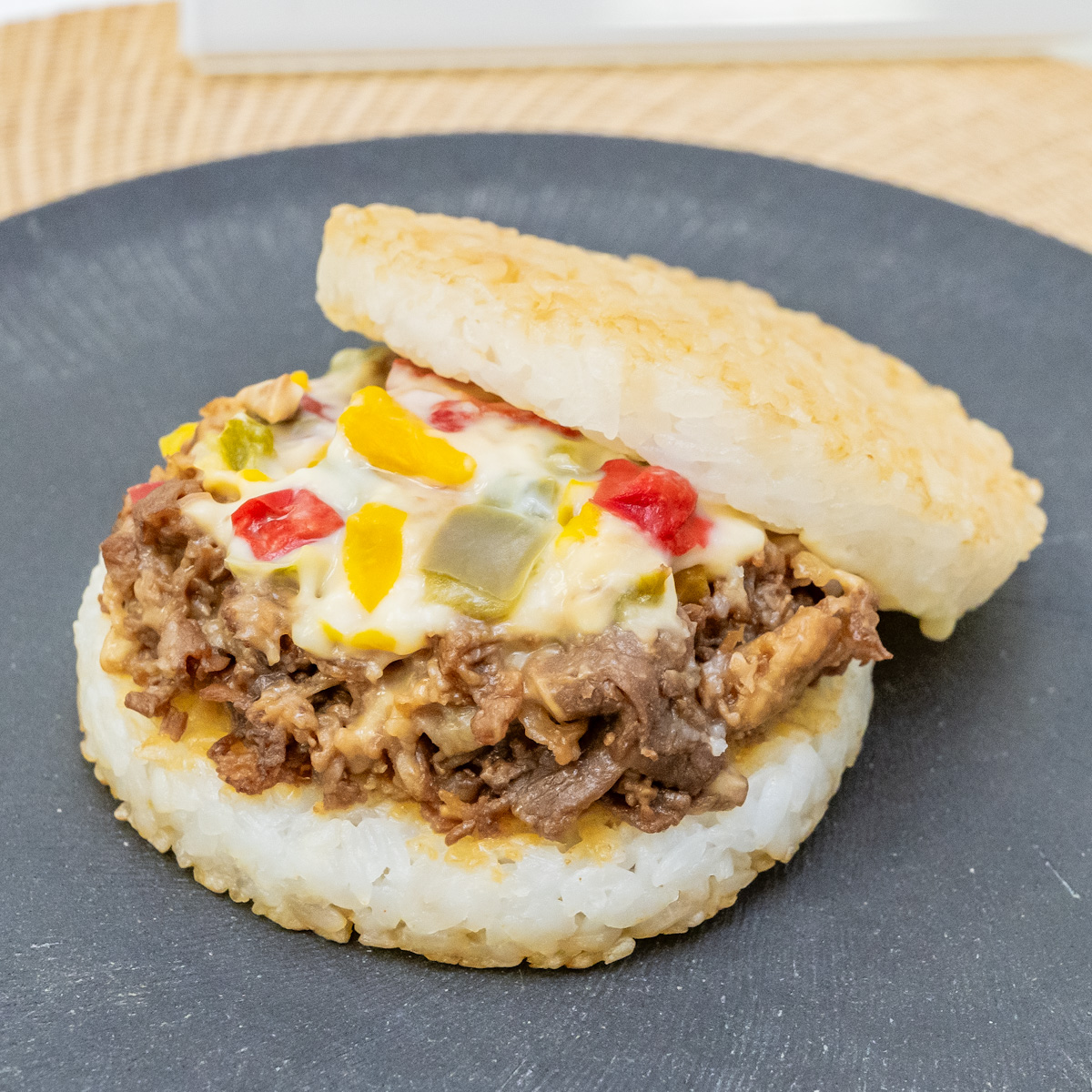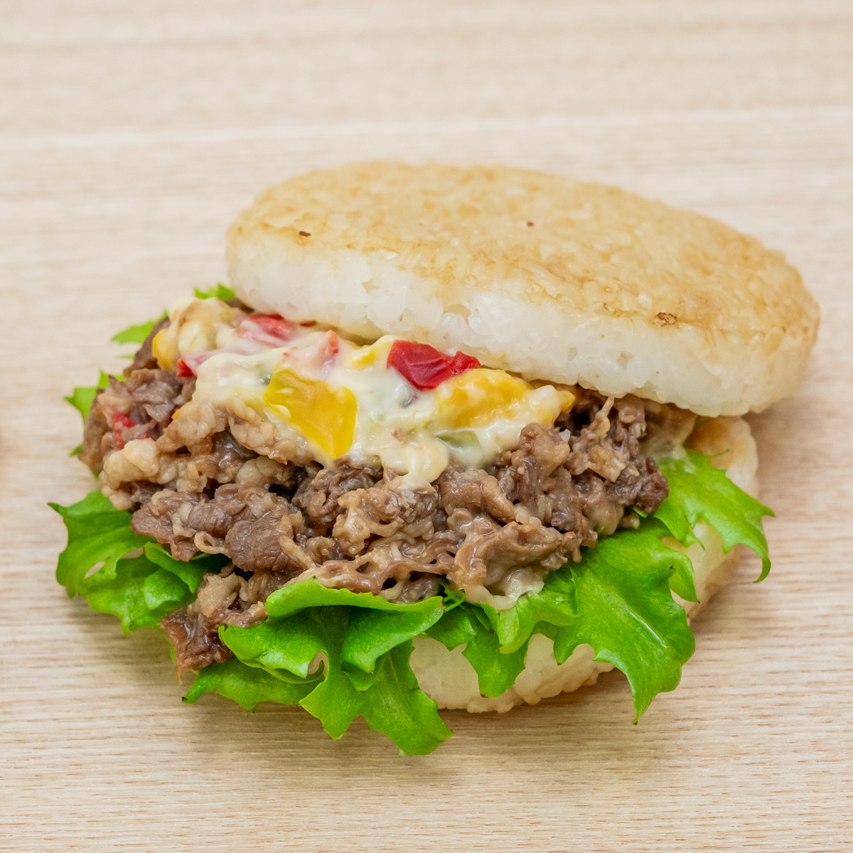 国内でも人気の高い「モスライスバーガー 焼肉」にチーズを乗せた、モスライスバーガー専門店オリジナルのアレンジメニュー。