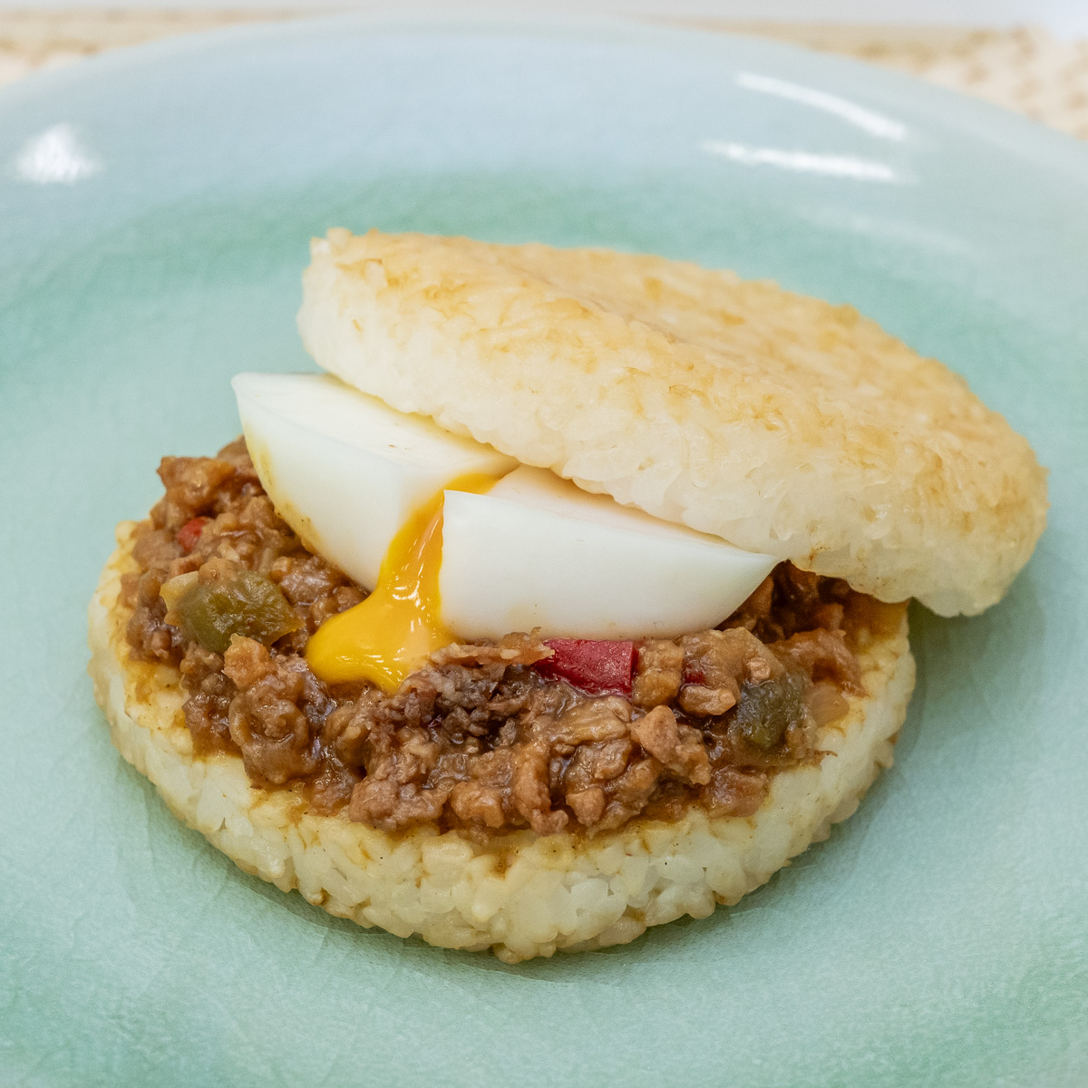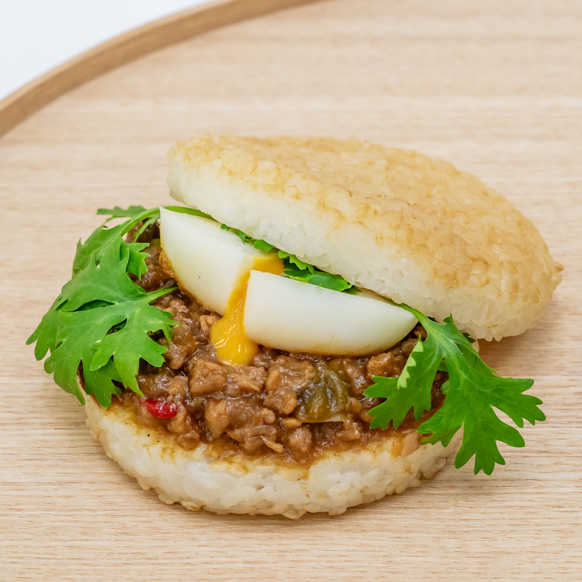 とろ~りとした半熟風たまごも楽しめる、辛さと旨みが特徴のガパオライスバーガーです。