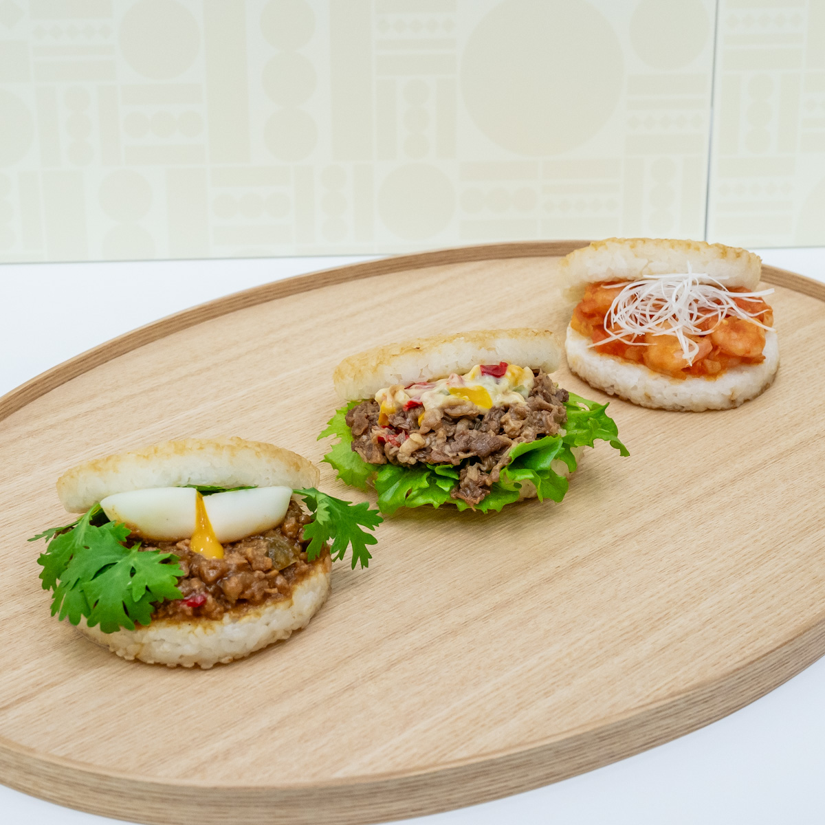 2023年8月からは「モスライスバーガー<ガパオ>」「モスライスバーガー<チーズ焼肉>」「モスライスバーガー<エビチリ>」の3種がラインナップされます。