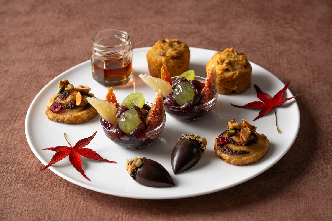 秋に旬を迎える食材をふんだんに使い「収穫の秋」を表現した、ヴィーガンメニューが勢ぞろいのアフターヌーンティー。