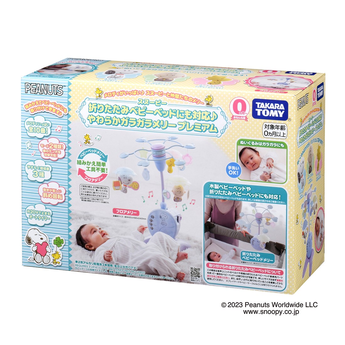 タカラトミーの「折りたたみベビーベッドにも対応♪ やわらかガラガラメリープレミアム スヌーピー」は、タカラトミー公式ショッピングサイト「タカラトミーモール」にて予約受付中です☆