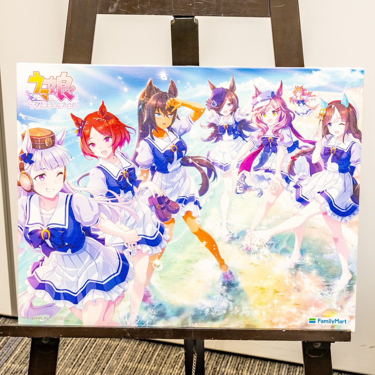 描き下ろしイラストを使用したアートフレームで、「ウマ娘 プリティーダービー」のキャラクターボイスを務める、声優7名のサイン入りです。