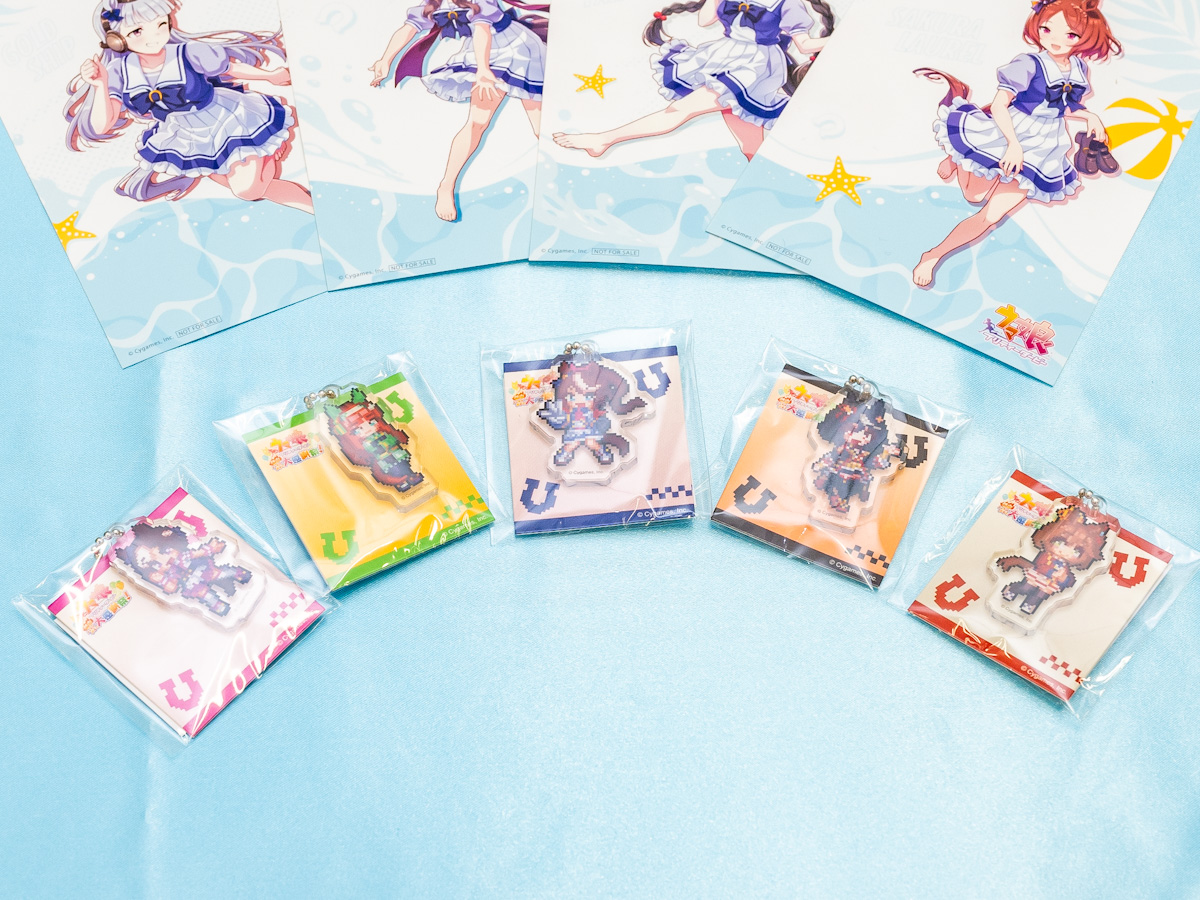 第2弾の2023年9月5日(火) 10:00~は、「キャンペーン限定!「ウマ娘 プリティーダービー 熱血ハチャメチャ大感謝祭!」ドット絵アクリルチャーム(全5種類)」が登場します。