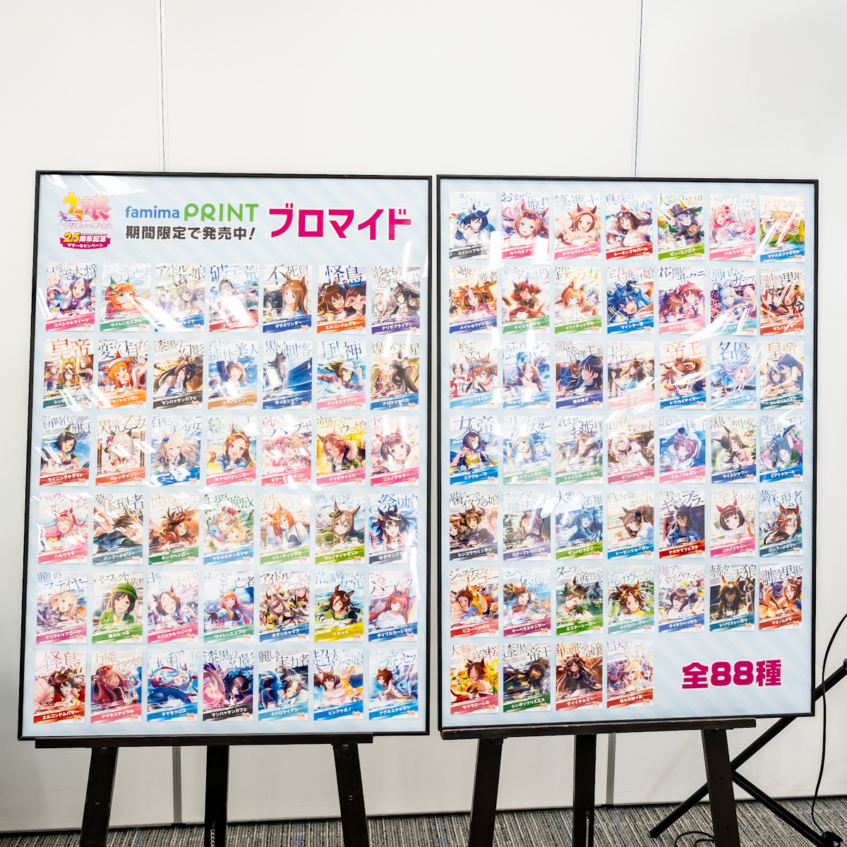 「ウマ娘 プリティーダービー」2周年記念広告デザインをベースとした全88種類のブロマイドが初登場します。