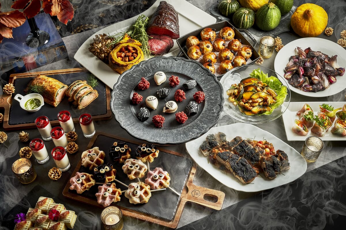 怖くてかわいいモンスターをモチーフにしたスイーツや、豊かな秋の実りを満喫できる食事が揃ったホテルブッフェ。