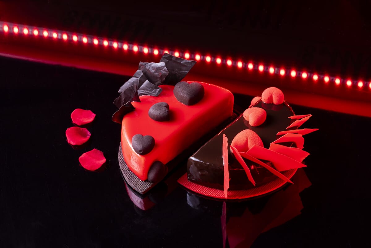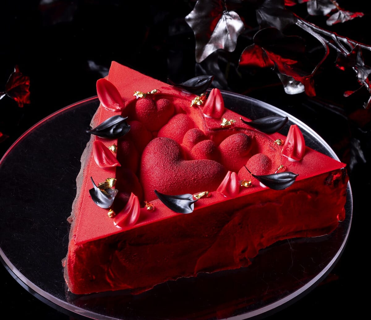 そして、いちご、ライチ、ローズの香りが次々と口の中で広がる「トライアングルハート」、サワークリームを使ったレアチーズケーキとプラムゼリーが印象的な「深紅のローズテーブル」など、個性豊かなケーキも。