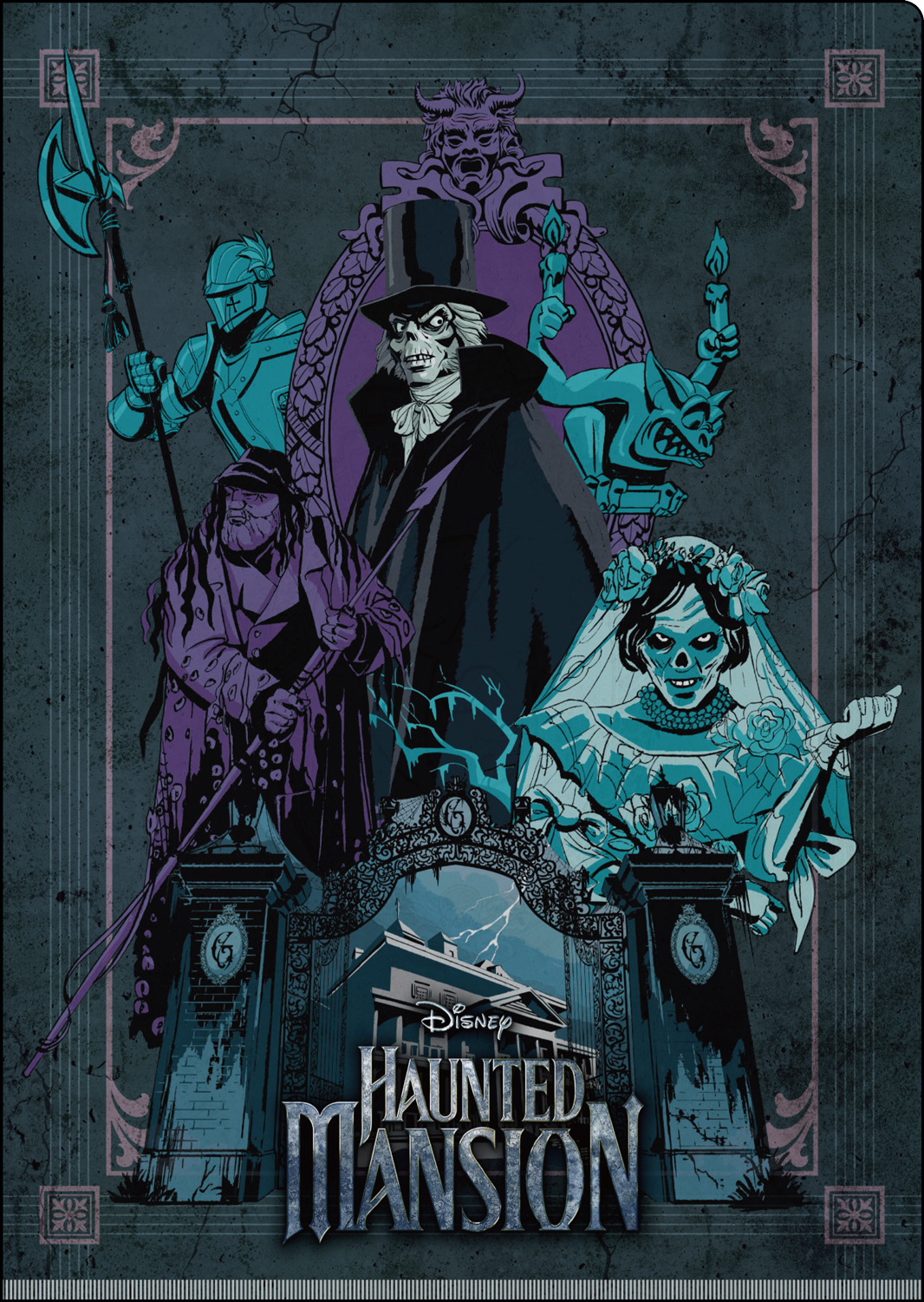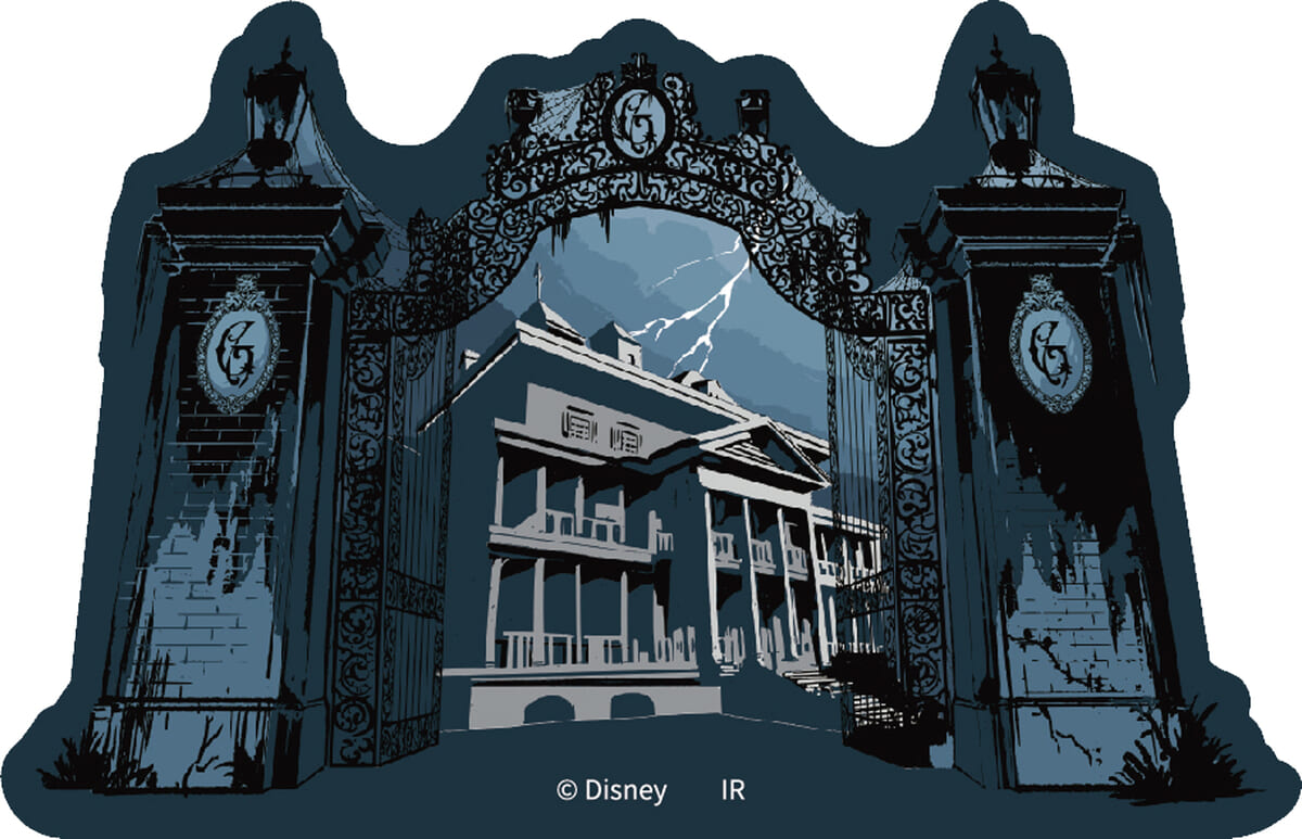 「ホーンテッドマンション」の荘厳な門がプリントされています。