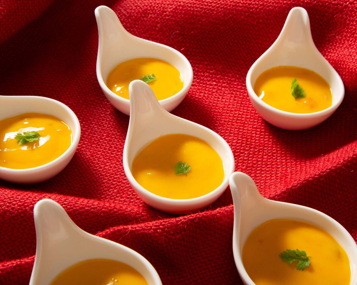 かぼちゃのおいしさがギュッとつまった、つやつやのかぼちゃプリン。