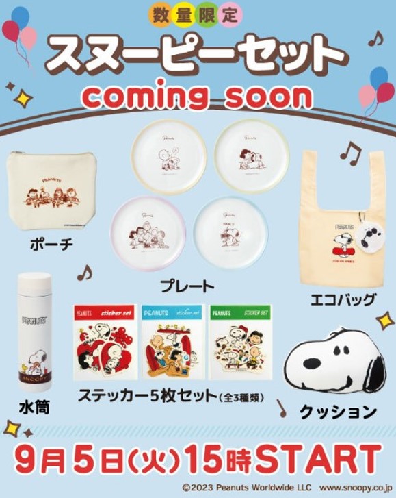 2023年9月5日(火)15時より、店頭などで「スヌーピー」のオリジナルグッズが登場。