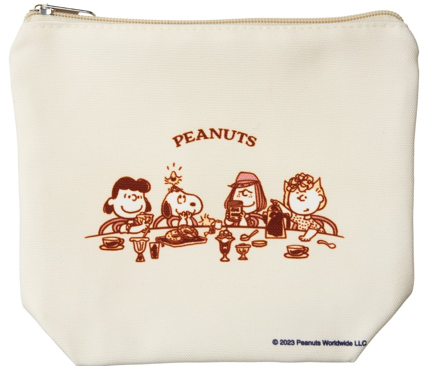 「スヌーピー」と女の子たちが、パフェやドーナツを楽しむイラストがかわいいポーチです。