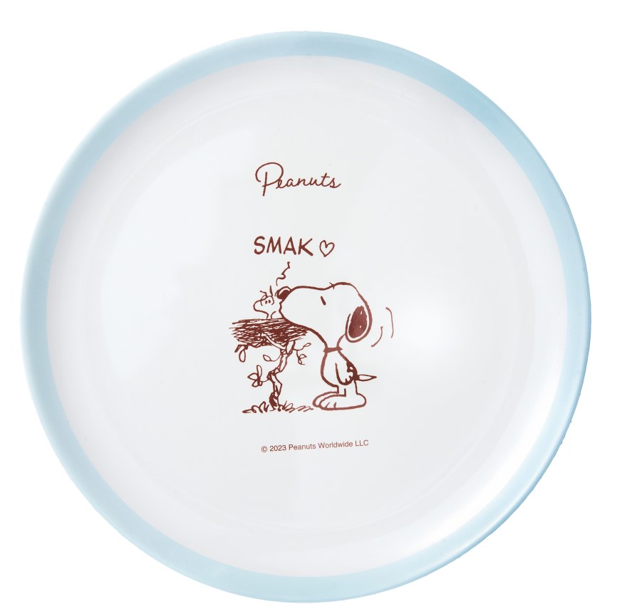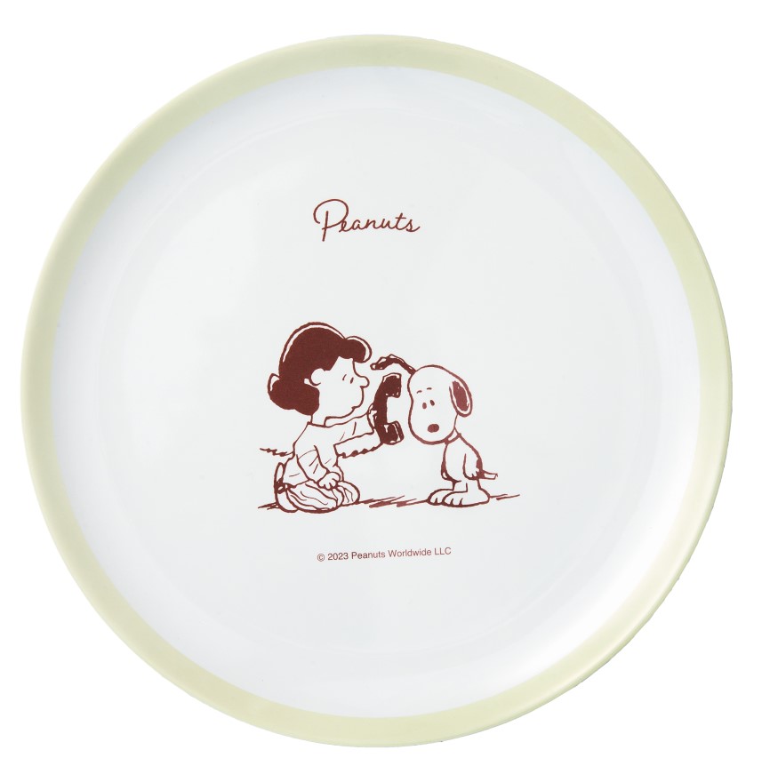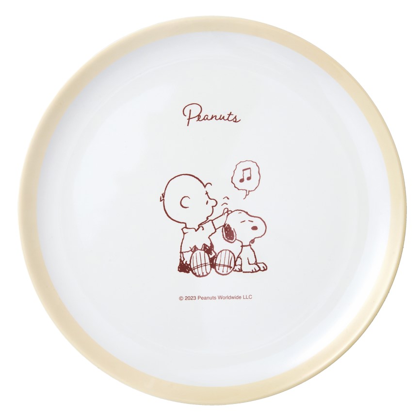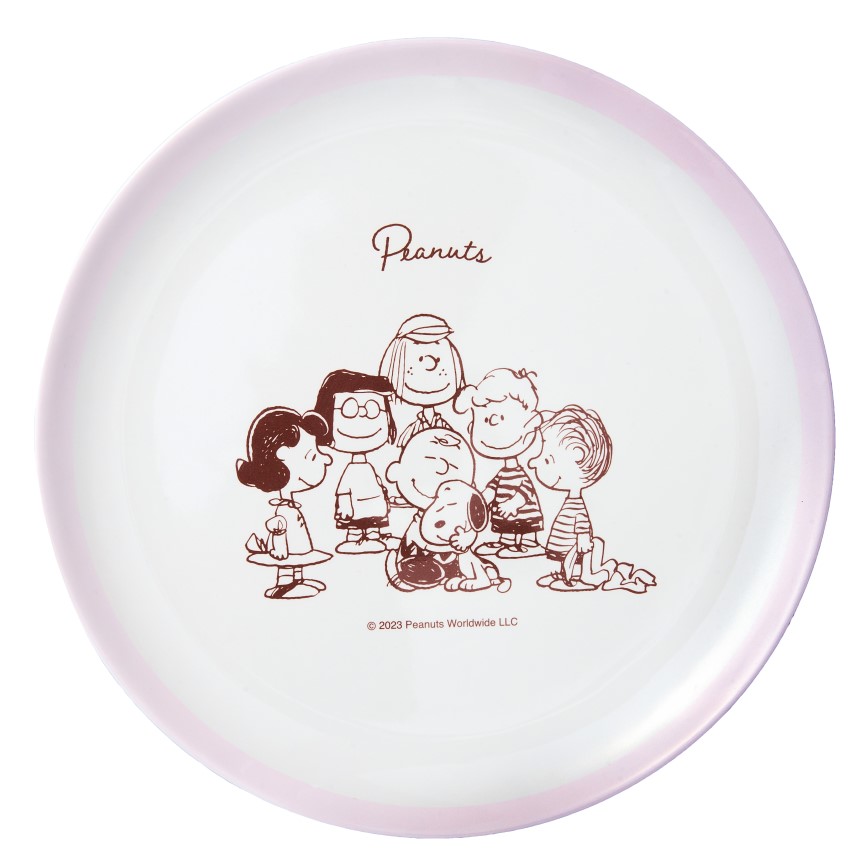 「スヌーピー」を優しく抱きしめる「チャーリー・ブラウン」をみんなが見守る、優しいデザインのプレートと、